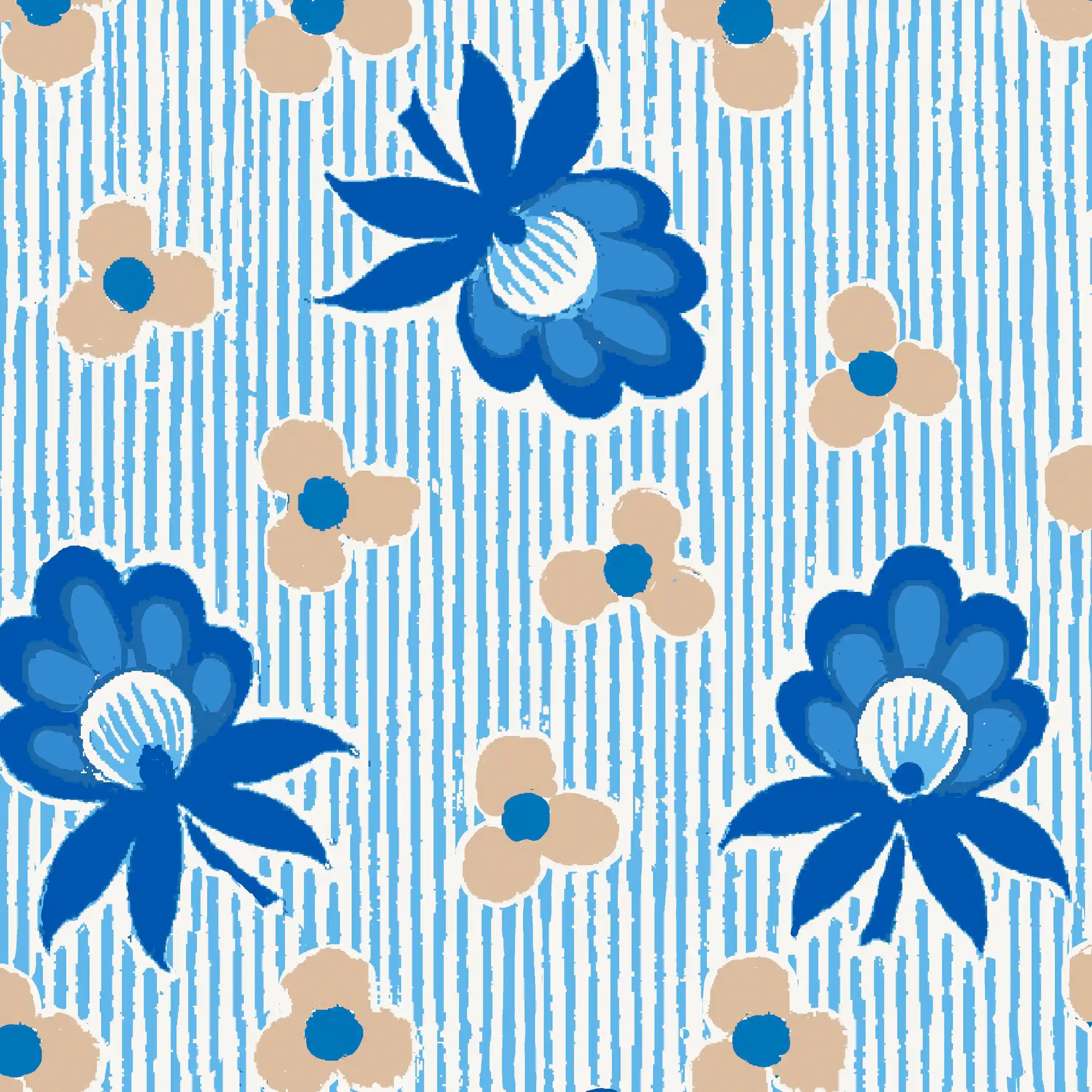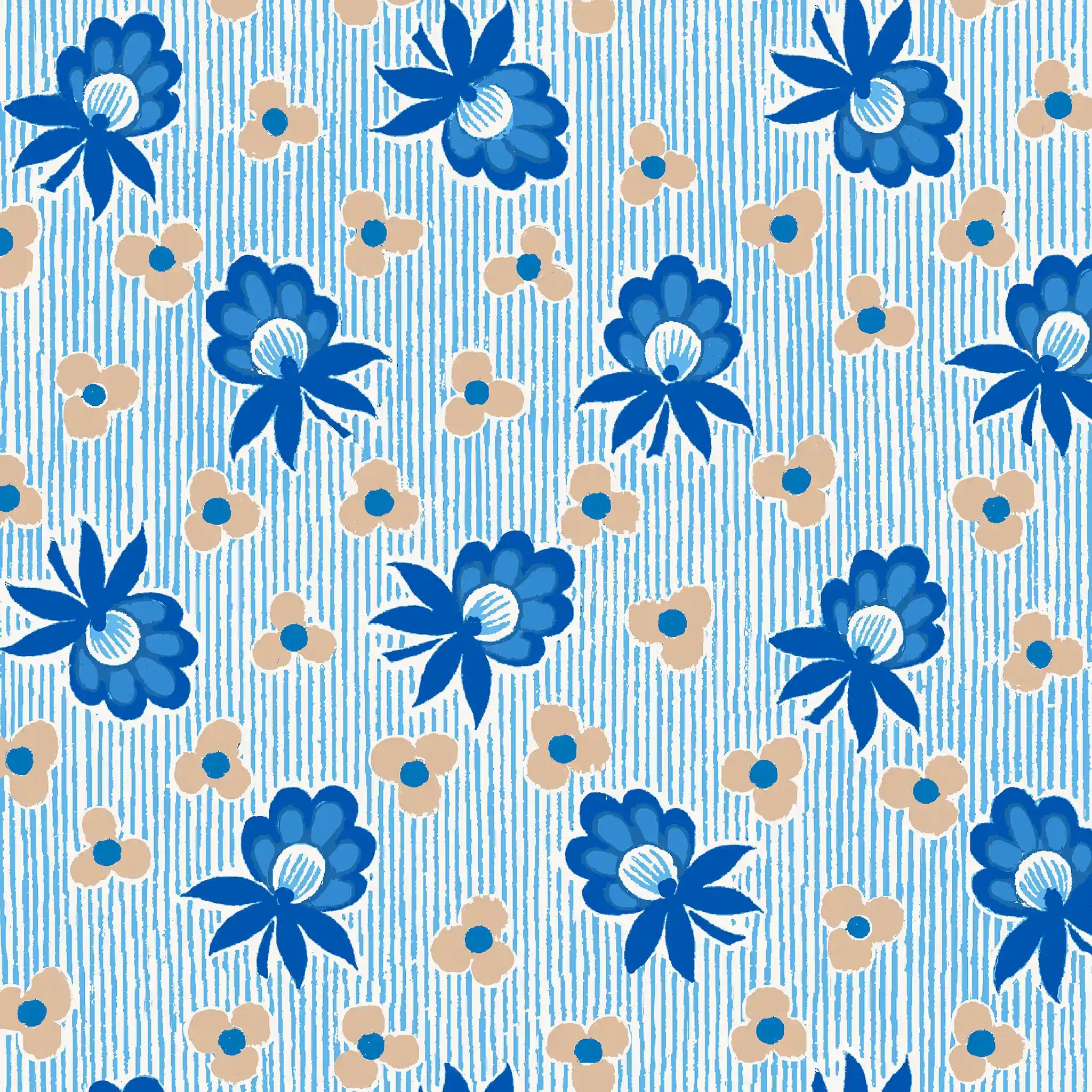 We named this design after our dad. We’re not sure it would have been his favourite but it’s memorable – just like him. Bold and naïve flowers contrast against the gentle flowing stripes – this retro print is joyful and bold and fun.