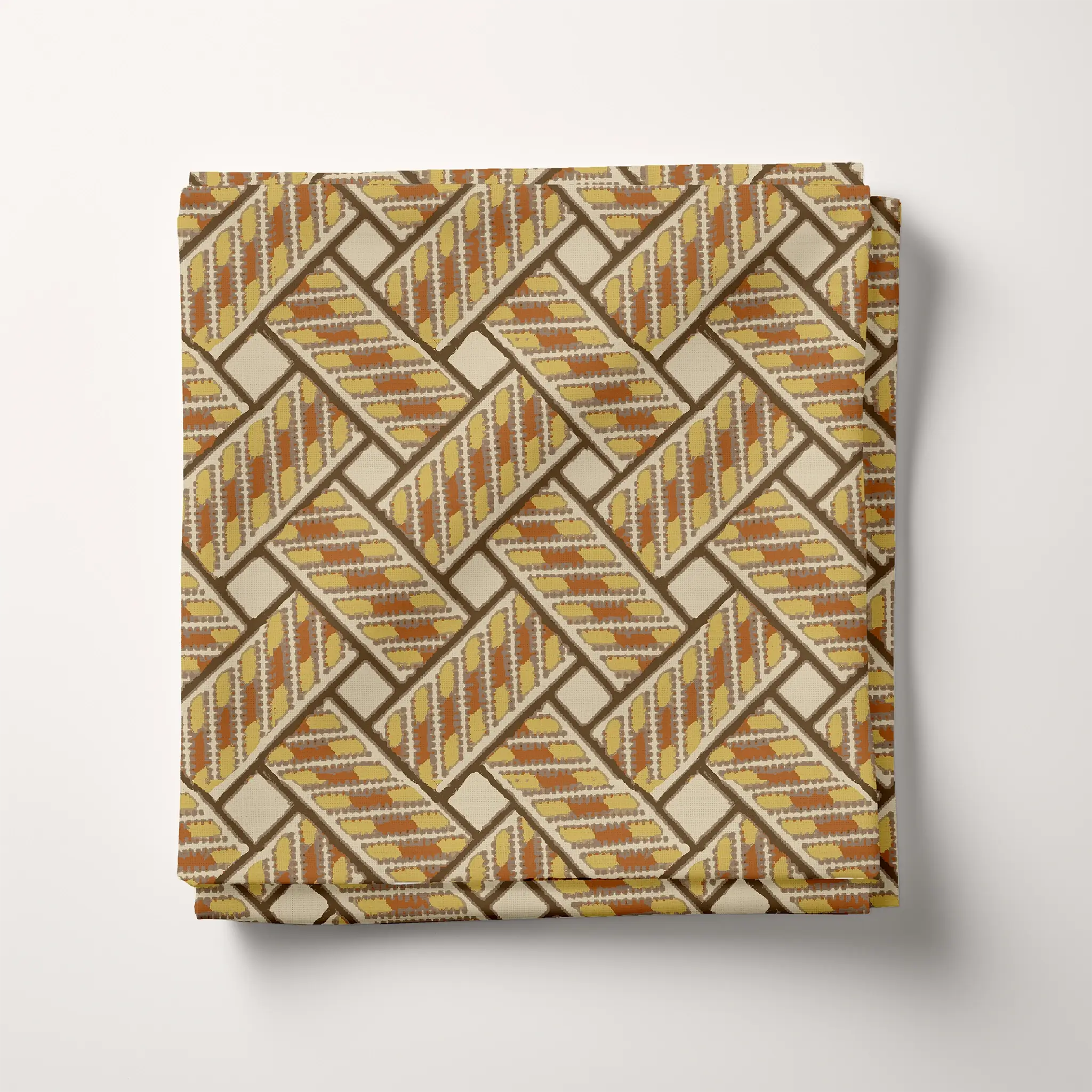 Believe it or not, this design was inspired by the latticed brickwork of our garden terrace. Many hours were spent riding our bikes around with only our loyal dog to cheer us on. We love how the trompe l’oeil effect gives depth whilst the geometric design brings a sense of order and balance.