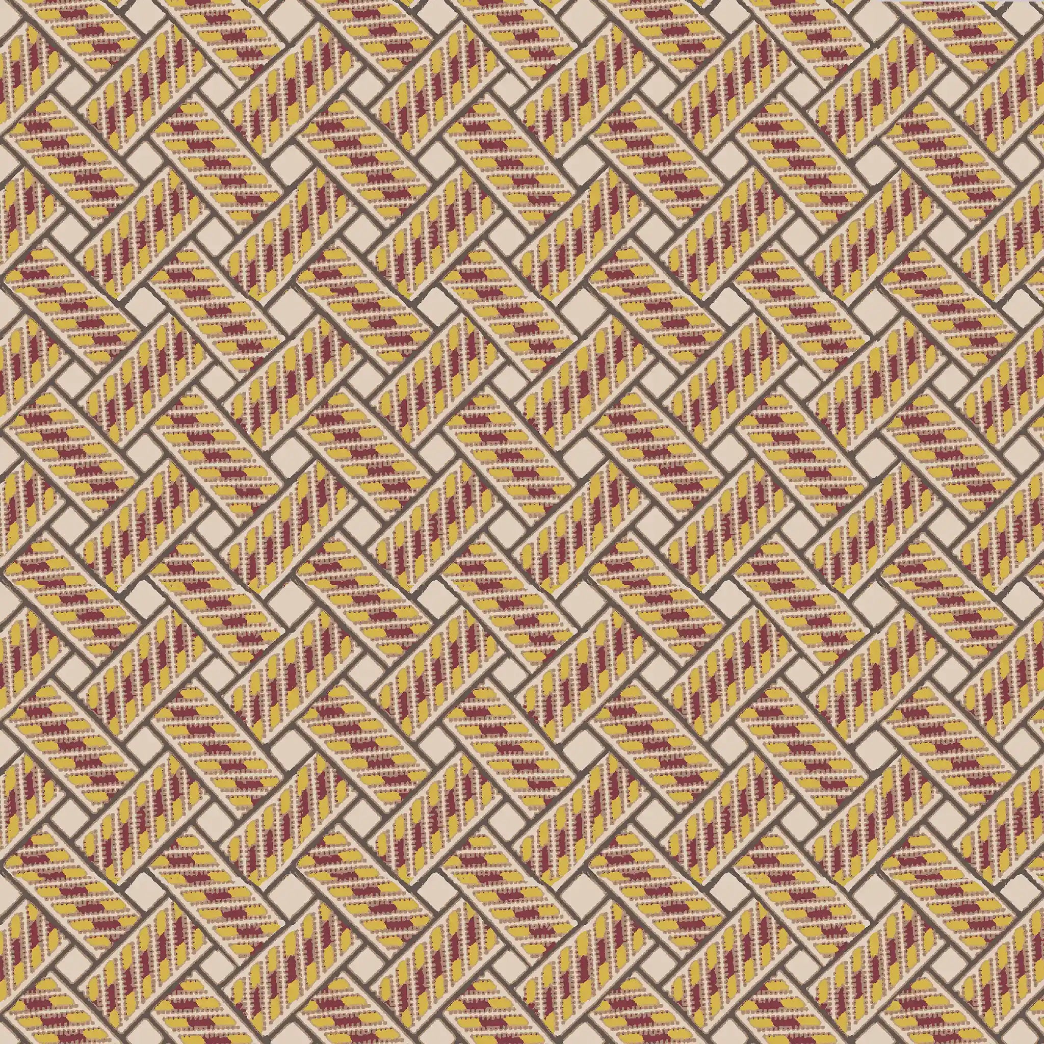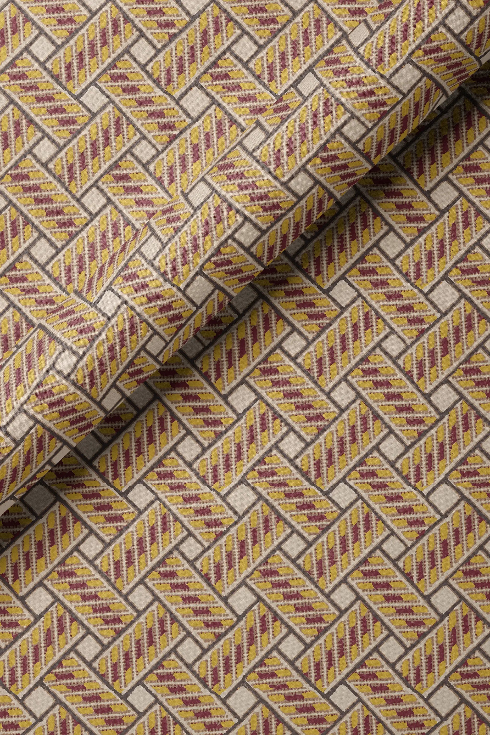 Believe it or not, this design was inspired by the latticed brickwork of our garden terrace. Many hours were spent riding our bikes around with only our loyal dog to cheer us on. We love how the trompe l’oeil effect gives depth whilst the geometric design brings a sense of order and balance.