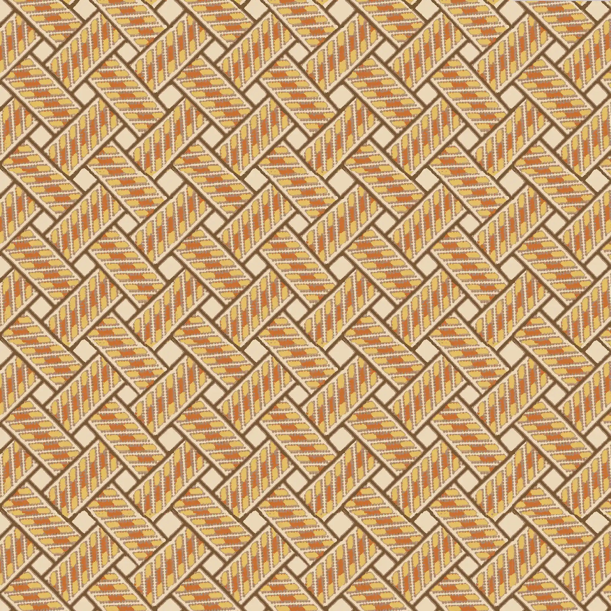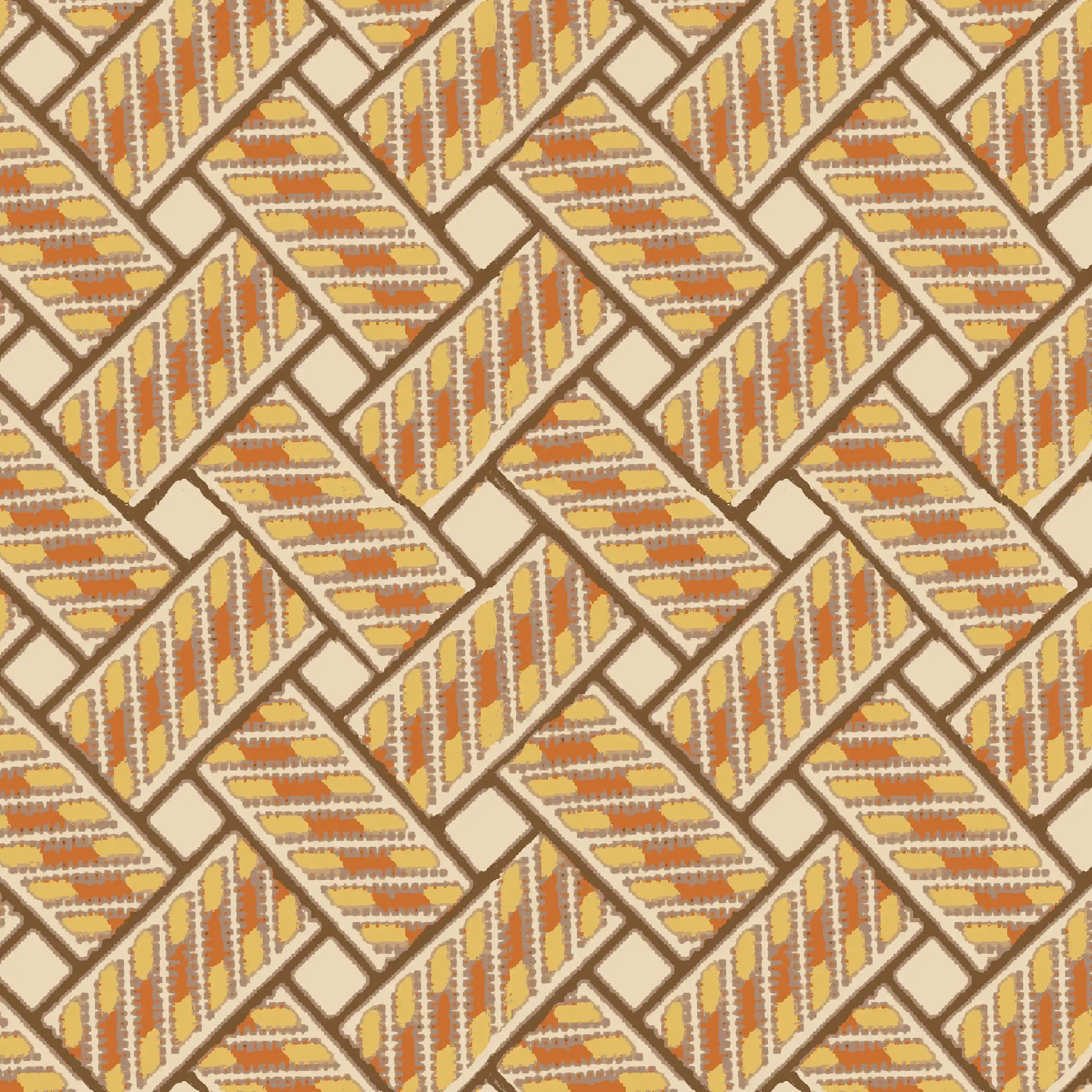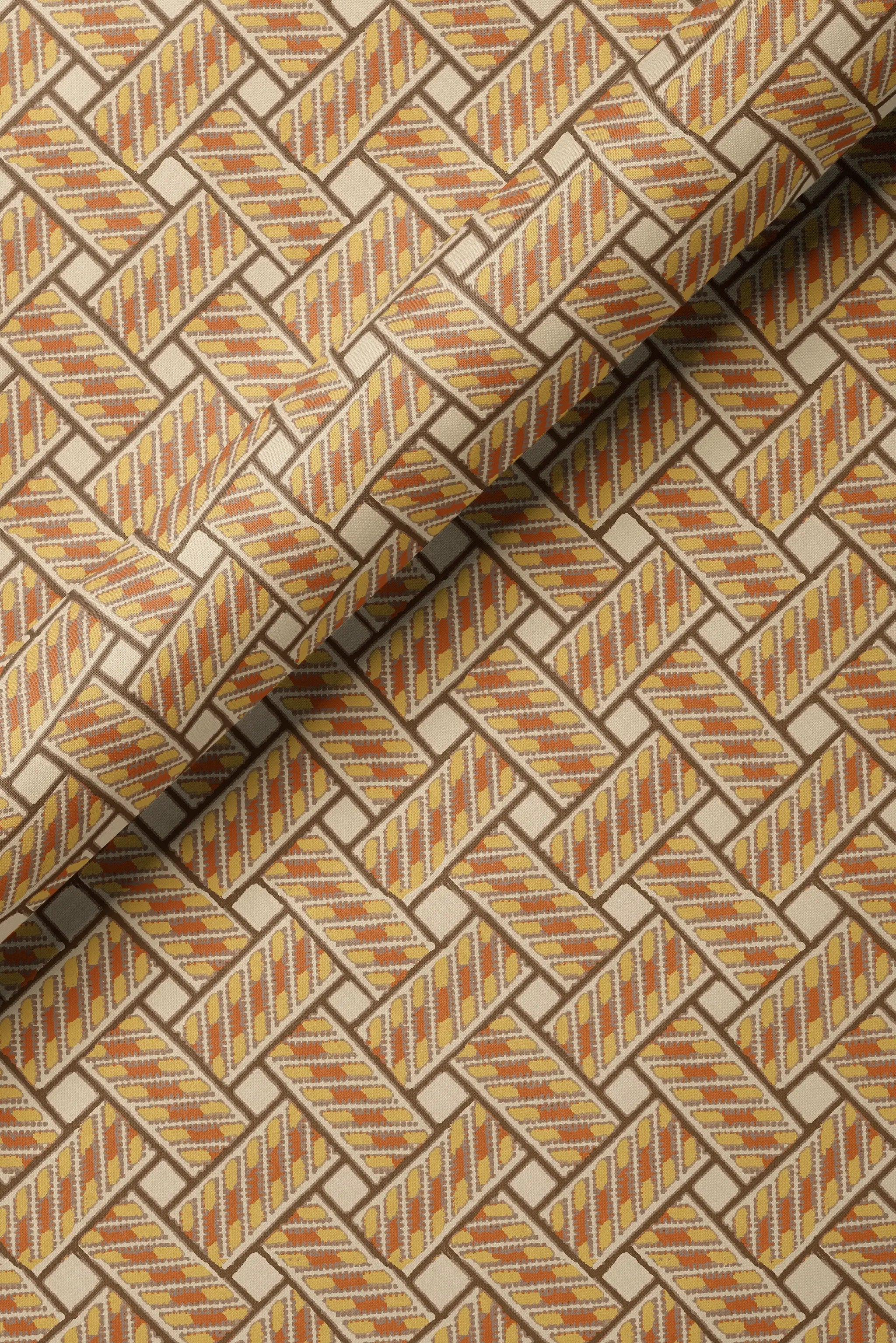 Believe it or not, this design was inspired by the latticed brickwork of our garden terrace. Many hours were spent riding our bikes around with only our loyal dog to cheer us on. We love how the trompe l’oeil effect gives depth whilst the geometric design brings a sense of order and balance.