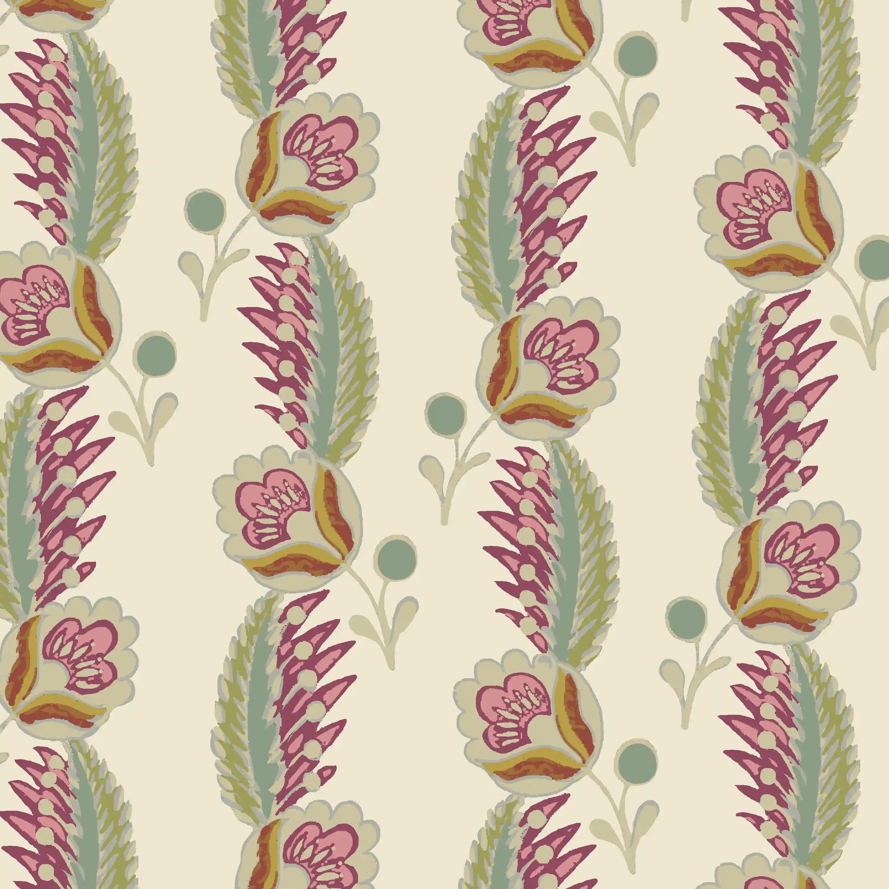 Explore our unique collection of colourful cotton and linen-blend fabrics, featuring vintage French patterns, nostalgic geometrics, and vibrant floral designs. Ideal for curtains, cushions, upholstery, and soft furnishings. All available with matching wallpapers and printed in the UK.